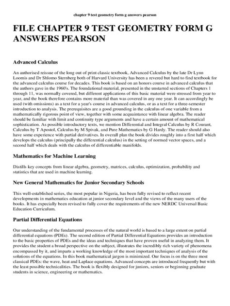 Download chapter 9 test geometry form g answers pearson Tutorial Free Reading PDF